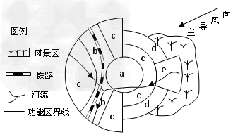 3、综合题 (13分)下图是“我国某海滨小城的城区布局图”,运用区位原理分析并完成下列问题。