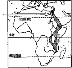 (2)图中②是横跨赤道的?(山名),是非洲第二高峰,它南面的③是号称“非洲之颠”的??,它们都是?火山,山顶终年白雪皑皑,成为赤道地区的奇观之一。