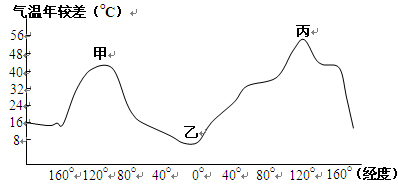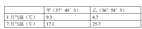 (3)据表比较甲、乙两城市的气温差异,并解释其原因。(10分)