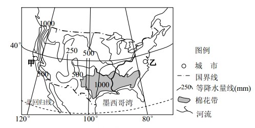 (1)我国新疆棉花产区和美国棉花带相比,两者相似的自然条件是??、