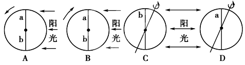 5、单选题 如果用a表示晨线,b表示昏线,下列图中表示正确的是