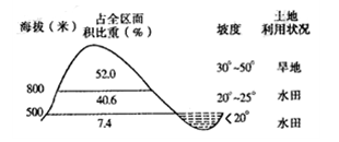 (1)根据图中土地垂直分布与土地利用状况图,分析该地区土地利用中存在不合理现象及