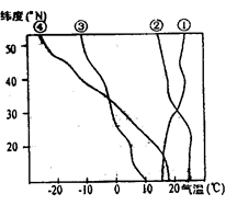 【小题1】我国东部总体上气温南高北低,同时夏季南北普遍高温、冬季南北温差大,据此可判断代表7月和1月的气温曲线分别是②和④;