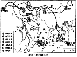 5、综合题 读珠江三角洲地区图,回答下列问题。