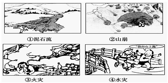 本题解析:本题考查防灾自救。①山区遇泥石流灾害不应顺山谷跑,而应沿山坡向上跑;