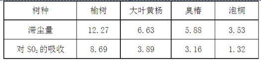 2、城市绿化可以减轻汽车尾气污染,据表选择城市绿化树种并说明理由。(4分)