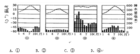【小题1】①、②、③、④四地中,气温高低的关系是( )