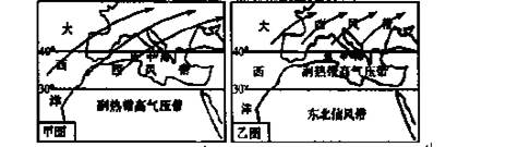 1.乙图表示的月份正确的是2.此时,地中海气候的特点是
