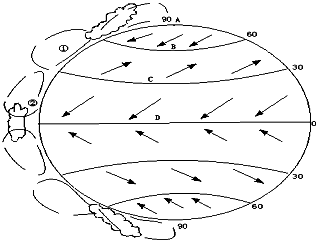 (2)在气压带中,动力原因形成的是 。 (填字母)。