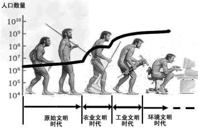 2、单选题 中国科学院可持续发展战略研究组将人类社会划分为四个发展阶段,读“人类社会不同发展阶段人口增长的示意图”,回答下面4题。|