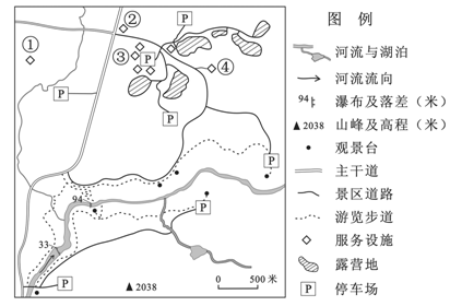 1、单选题 下图为温带某景区导游图。读图,回答(1)—(2)题。