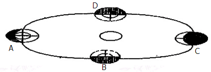 5、单选题 读下面地球公转图(阴影表示夜半球,内圆表示极圈,中心表示北极点),回答下列小题: