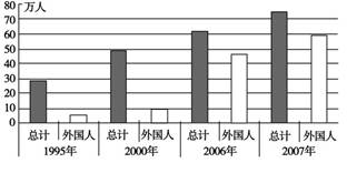 (2)阅读海南客源情况变化图,说明海南入境游客变化的特点。(3分)
