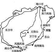 2、综合题 (15分)2010年1月4日,国务院发布了《关于推进海南国际旅游岛建设发展的若干意见》,将海南建设成国际旅游岛上升为国家战略。读海南岛图,完成下列问题。