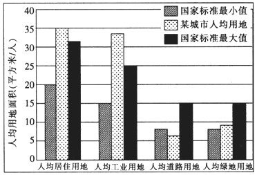 1、单选题 下图表示我国某城市2008年部分人均用地状况。读图,回答1~2题。
