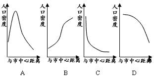 1、图中能正确反映Ⅱ阶段都市人口密度与距离市中心的远近两者之间关系是