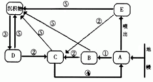 2、单选题 读图 “地壳物质循环示意图”,关于岩石圈地壳物质循环各环节的正确表述是