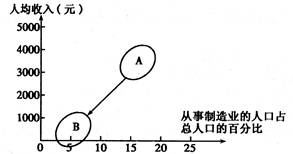 5、单选题 下图所示为我国不同地区人均收入与从事制造业口占总人口的百分比图。回答小题。