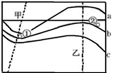 小题2: 若此图为等温线分布图,且甲、乙分别代表陆地和海洋,则此时