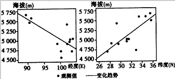 5、单选题 下图示意长江上游地区雪线高度的经向和纬向变化趋势。完成1—2题。