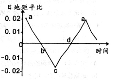 小题2:日地距平比=(实际日地距离一日地平均距离)÷日地平均距离,它反映日地距离的变化情况。右图示意日地距平比随时问的变化规律。两个人造天体对接时,日地距平比最接近