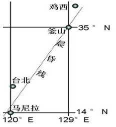 1.飞机的飞行时间约为2.2011年1月1日,下列地区中,日出早于釜山的是