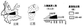 4、综合题 读云南、江西两省旅游业发展示意图,完成下列要求:(10分)