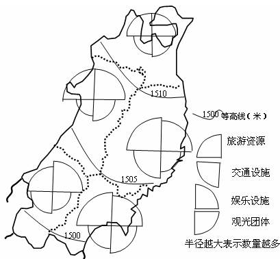 1、单选题 图为某地旅游资源情况调查图,读图回答下列各题。