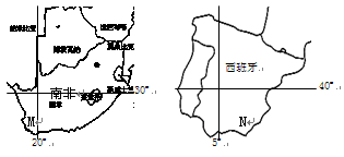 4、单选题 第19届世界杯足球赛于2010年6月11日至7月12日在南非举行,最终西班牙队获得了冠军。结合南非和西班牙两国地图,回答问题。