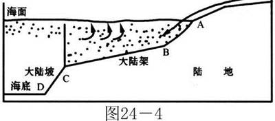 4、综合题 图24-4是大陆架剖面示意图,读图回答下列问题:
