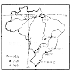 5、单选题 2014年巴西世界杯足球赛将于6月12日至7月13日举行。读巴西地理简图,回答下列各题。