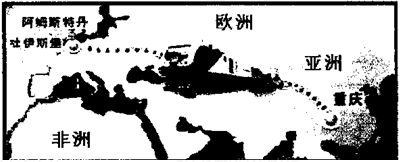 1、单选题 2011年3月19日,渝新欧国际铁路进入全程试运行。列车于4月5日凌晨达到德国杜伊斯堡。读下图完成第下列各题。