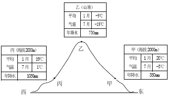 4、单选题 下图为“某山地甲、乙、丙三地气温、降水量资料图”。读图判断下列叙述正确的是