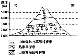 本题解析:本题考查自然带分异。从赤道向高纬,随着纬度的增加山麓地带的热量也逐渐减少;故针叶林带在山地分布的海拔高度也会逐渐降低。