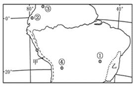 小题2:该季节为南半球的夏季,甲地区沿岸有加那利寒流流经,水汽遇冷凝结常常出现大雾天气,A正确,B错误,乙由于位于信风的迎风坡和巴西暖流的影响,形成热带雨林气候,C错误,甲地是热点沙漠气候,D错误。