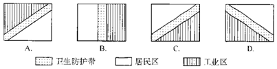 本题考查风向对城市布局的影响。上海为季风气候,夏季吹东南季风,冬季吹西北季风。工业区应布局在季风垂直的郊外,应布局在西南或东北部。所以本题选择D选项。