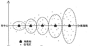 4、多选题 下图为“城市轨道交通(地铁)对住宅空间分布影响示意图”。读图回答下题。
