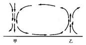 1.若该图为南半球三圈环流的一部分,且甲地纬度低于乙地,则甲为副热带高气压带,乙为副极地低气压带。改环流为中纬环流,之间为盛行西风带。