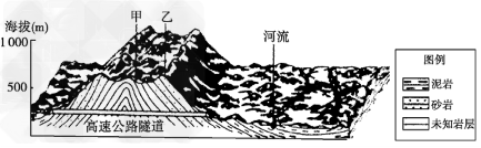 (4)如果在该地区的甲、乙、丙进行钻井,有可能在___________地找到石油、天然气,如果该地区的甲、乙、丙修建一条地下隧道,应选择________地。