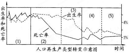 2、单选题 读下面的人口再生产类型转变示意图,回答3题