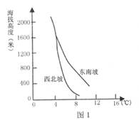 2、单选题 图1为我国某山地不同海拔高度1月份平均气温垂直变化图。读图回答问题。