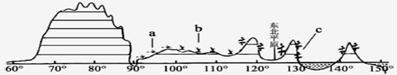1.图中b地的自然带名称是2.导致图中由c到a自然景观差异的主要因素是