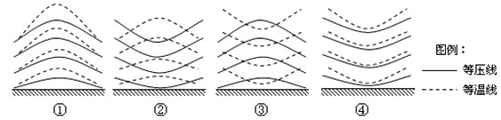1、单选题 读①、②、③、④四种等压面与等温面示意图(下图),完成1—2题。