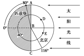 第(1)题,图示之中有北京、匹兹堡等相关的信息,可以肯定该图是以北极为中心的极圈俯视图,地球的自转方向应该是逆时针。