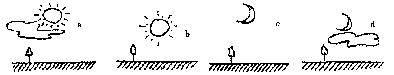 3、单选题 依据图所示,只考虑昼夜和云量状况,下列地区气温排列正确的是
