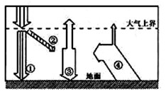 小题1:图示箭头中,代表近地面大气主要直接热源的是(?)?