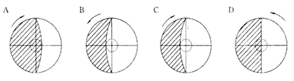 1、单选题 所给四幅图中,表示南半球夏至日的是