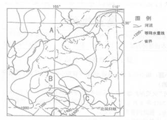 (2)简述B地形区东西两侧降水量的差异及影响因素。(6分)