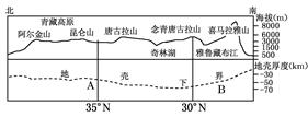 (3)从图中可以看出地壳厚度与地势的关系是 ,青藏高原多海拔很高的山脉,为什么其地表特征却是“远看是山,近看成川”?(3分)