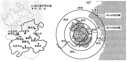 材料一2010年1月12日,国务院正式批复《皖江城市带承接产业转移示范区规划》,标志着皖江城市带承接产业转移示范区建设上升为国家战略。下图为皖江城市带示意图。?